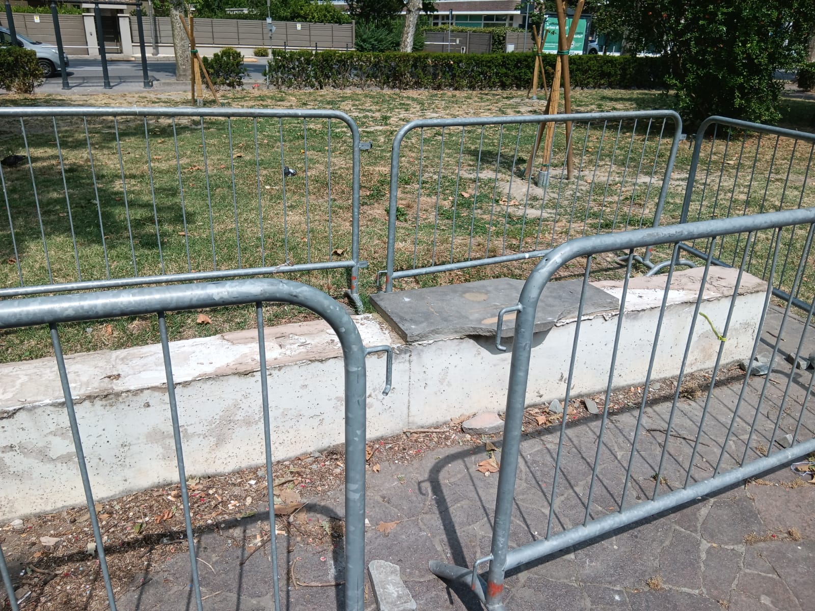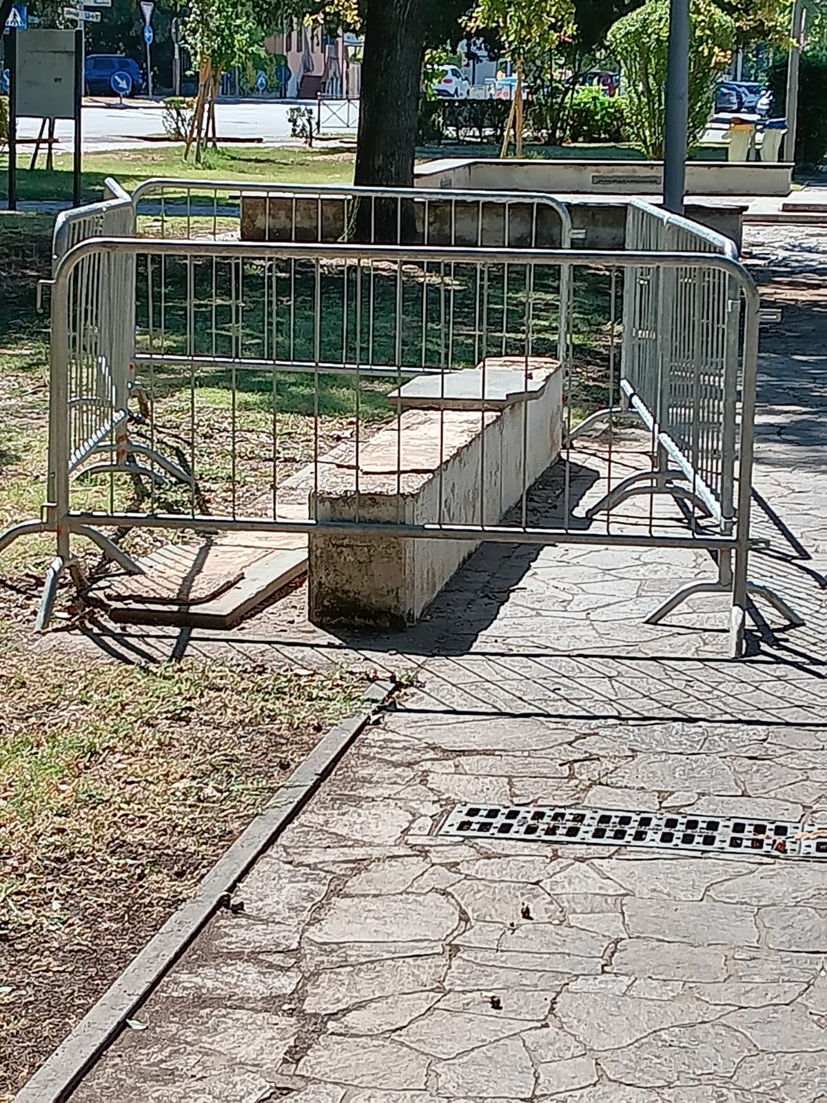 Passeggiando per i viali dei giardini, è impossibile non notare i numerosi rattoppi di catrame che deturpano i vialetti, un segno evidente di interventi frettolosi e poco curati, che non risolvono il problema alla radice ma ne peggiorano l'estetica e la fruibilità. A ciò si aggiungono transenne sostanzialmente abbandonate a sé stesse, che servono solo per certificare uno stato dell'arte desolante e una mancanza di programmazione.