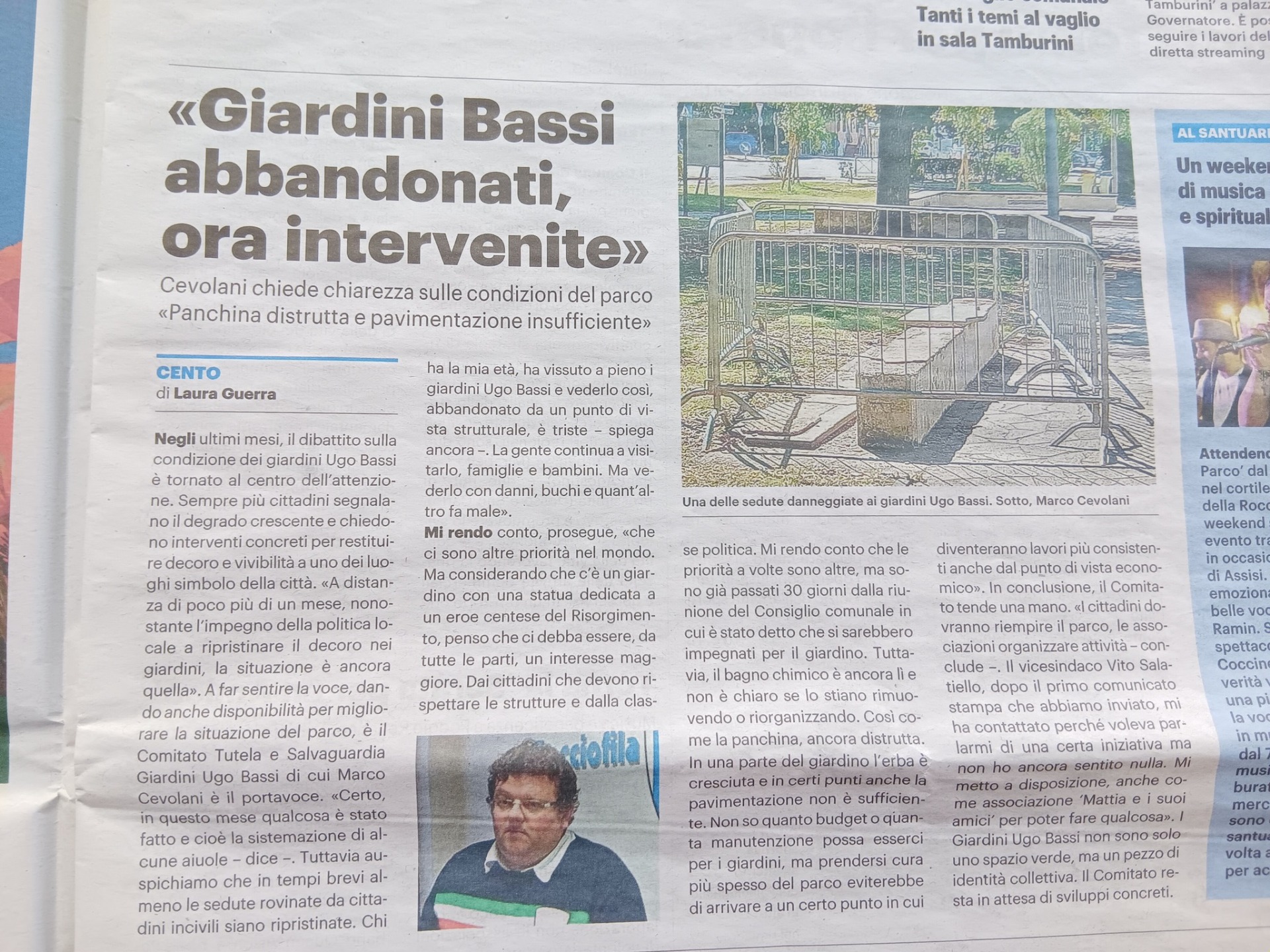 Siamo profondamente preoccupati per questa situazione che non solo compromette la bellezza e la vivibilità dei Giardini Ugo Bassi, ma ne mina anche la sicurezza e la funzione sociale. Un giardino pubblico dovrebbe essere un luogo accogliente e sicuro, un punto di riferimento per la comunità, non un'area dimenticata e trascurata.